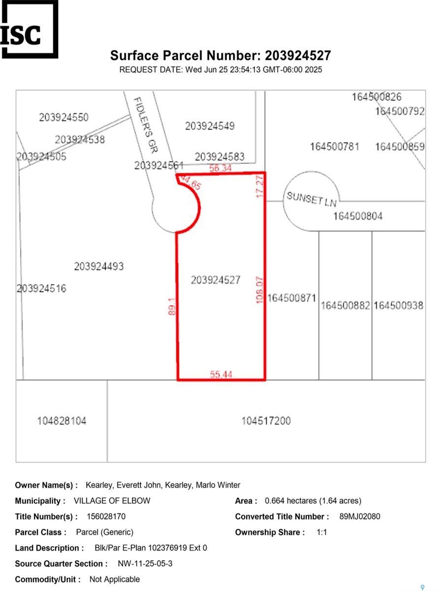 Lot E - Fidlers Green, Elbow, Saskatchewan Discover the potential of Lot E, a 1.64-acre property in the tranquil resort village of Elbow, just minutes from LAKE DIEFENBAKER. This scenic lot offers BEAUTIFUL LAKE VIEWS and is ready for development with recent soil and environmental testing completed. SERVICES including power, gas, phone, and municipal water are nearby, making the building process straightforward. The property also features an 1,800 sq ft HOOP ARCHRIB BUILDING (built in 2000) with a concrete floor, offering added value and versatility. Whether you're planning a peaceful year-round residence or a lake getaway, Lot E offers space, convenience, and natural beauty in one of Saskatchewan's most sought-after lakeside communities. A rare opportunity - build your dream retreat today!